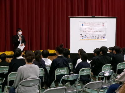 前半は、4〜6年生も講演を聞きました。