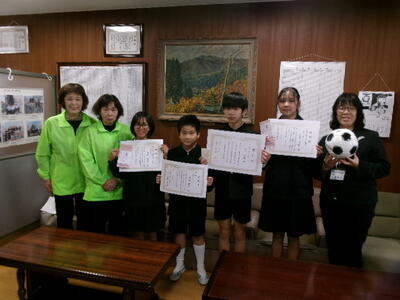 多くの児童の応募があったということで、学校賞としてサッカーボールもいただきました。
