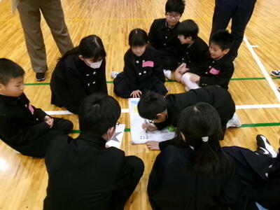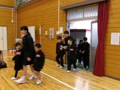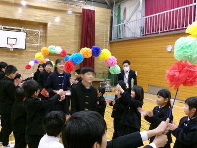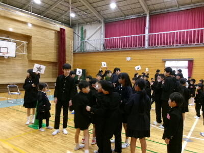 卒業まで残り数日。6年生に感謝の気持ちを伝え、全校でゲームなどをして楽しみました。