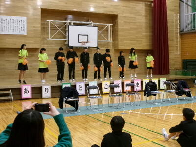 各学年からは、楽器の演奏や歌、クイズなどの出し物とプレゼントがありました。