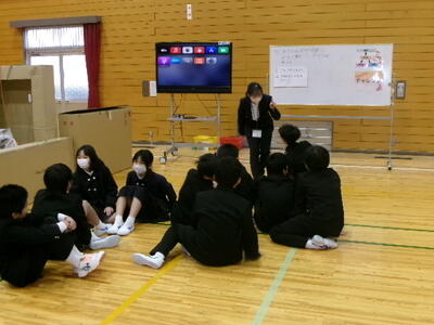 来年度、新見第一中学校に入学する8校の6年生が集まり、中学校での授業体験をしたり校内の探索をしたりして、交流を深めました。