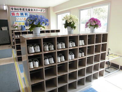 教室に行く時に、各学年の靴箱を見ると、どの学年もきちんと靴が揃って入れられていました。