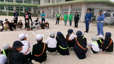 この日から、1年生も一緒に歩いて登下校するので、交通教室を実施しました。