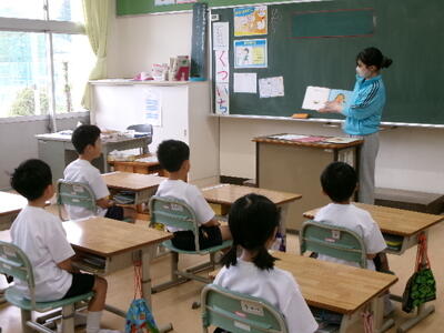 1〜3年生が、毎月2回、読み聞かせをしていただいています。