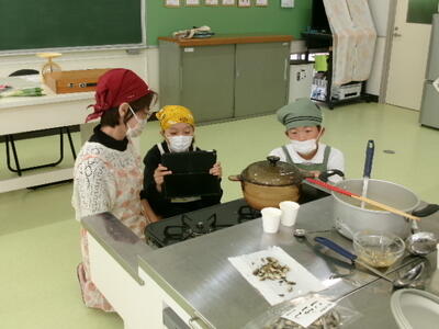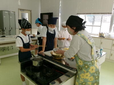 5年生が、ご飯とおみそ汁を作る調理実習をしました。