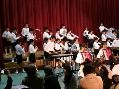 次に、3〜6年生の合唱「カイト」、合奏「新宝島」です。