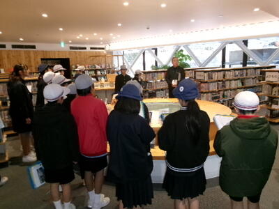 真庭市立中央図書館では、木材を使ってリノベーションした施設を見学しました。