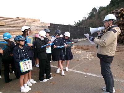 最後に、真庭バイオマス集積基地に行き、たくさんの木材が集められ、チップになっていく