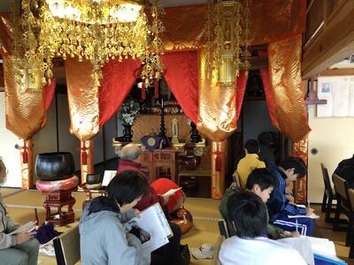午後は、大医寺に行き、糸谷住職からお寺が建てられた経緯や、その頃の時代背景などをお聞きしました。