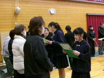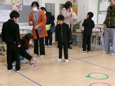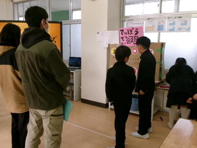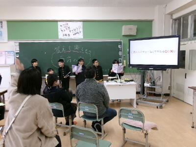 続いて、各教室や体育館で、交流したり発表の様子を見ていただいたりしました。